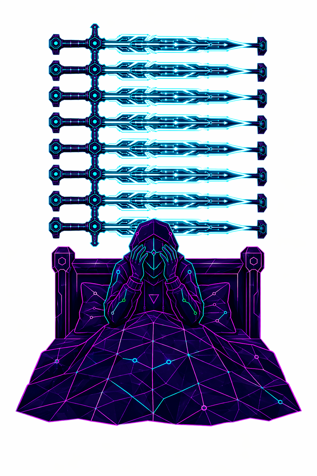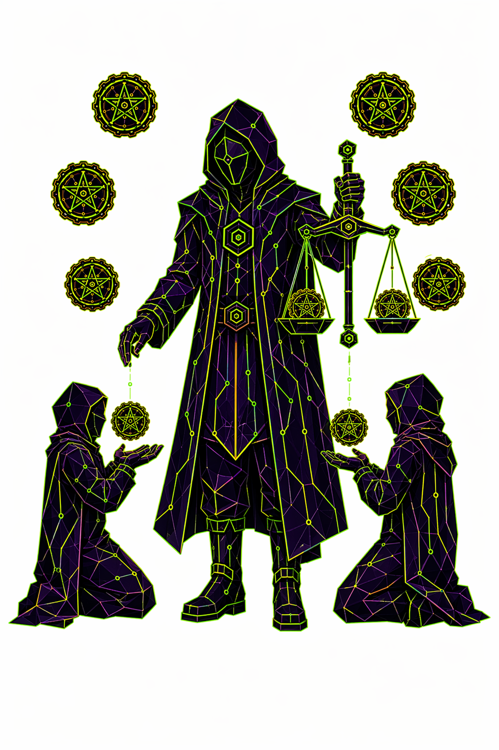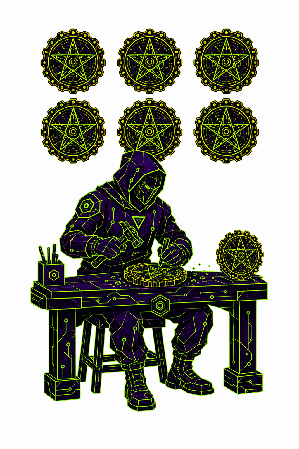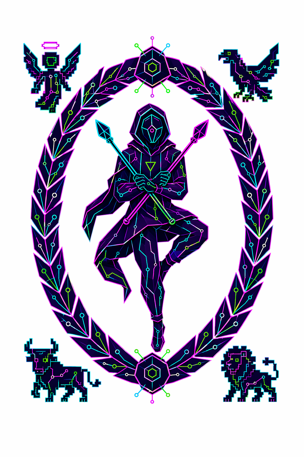 78 карт. Классические образы Таро в чистой неоновой стилистике. Простые формы, яркие акценты.