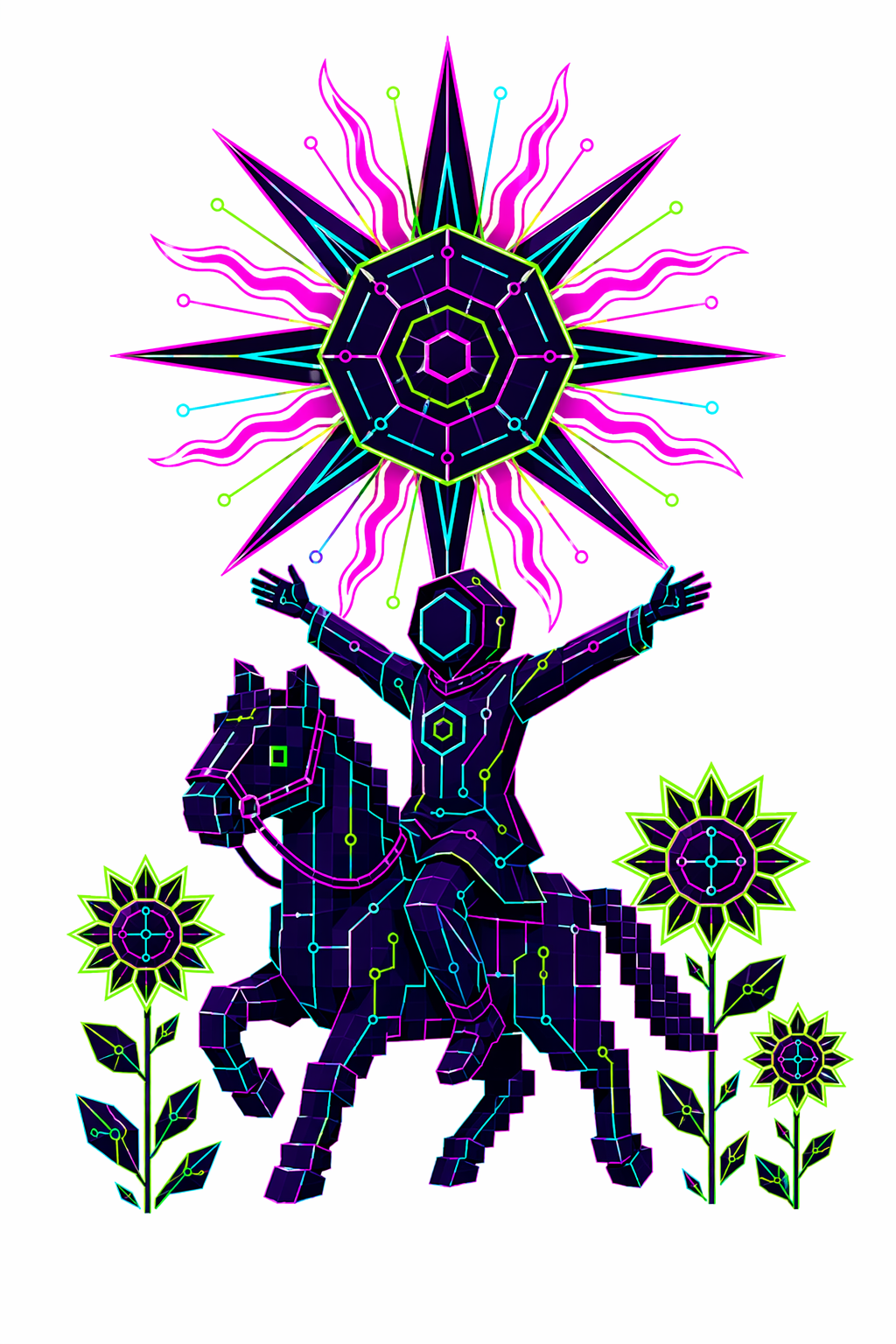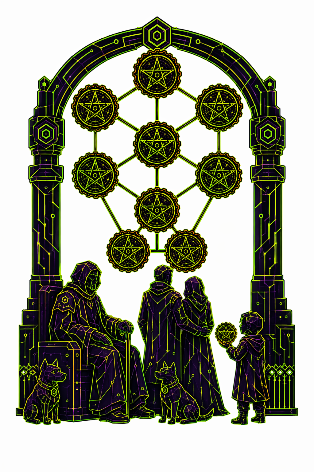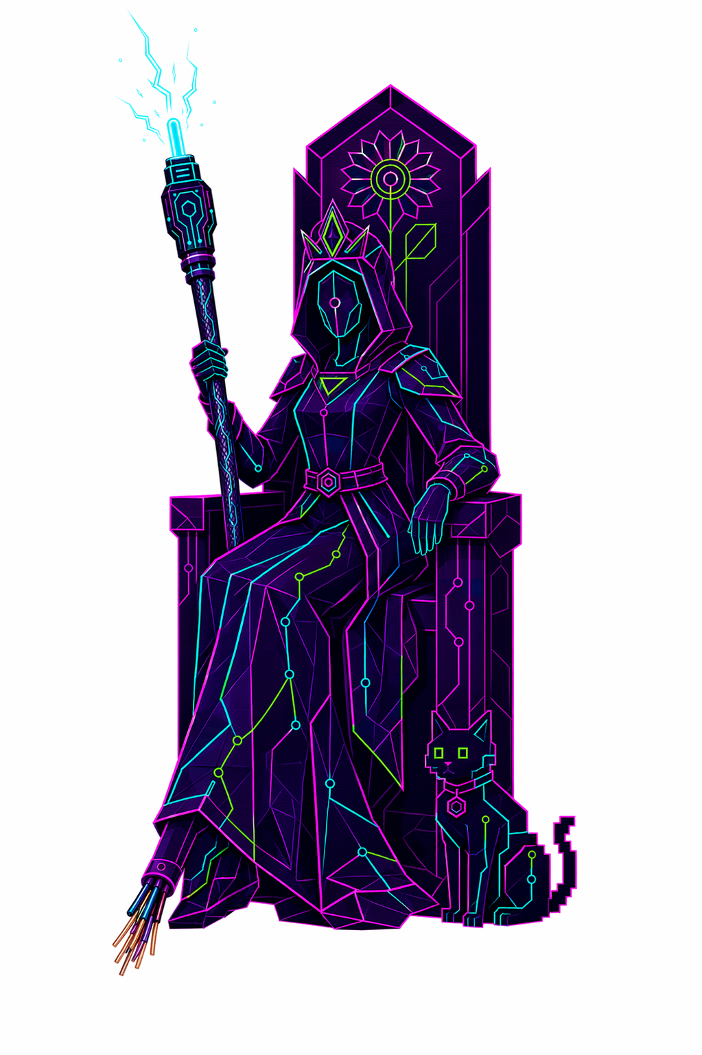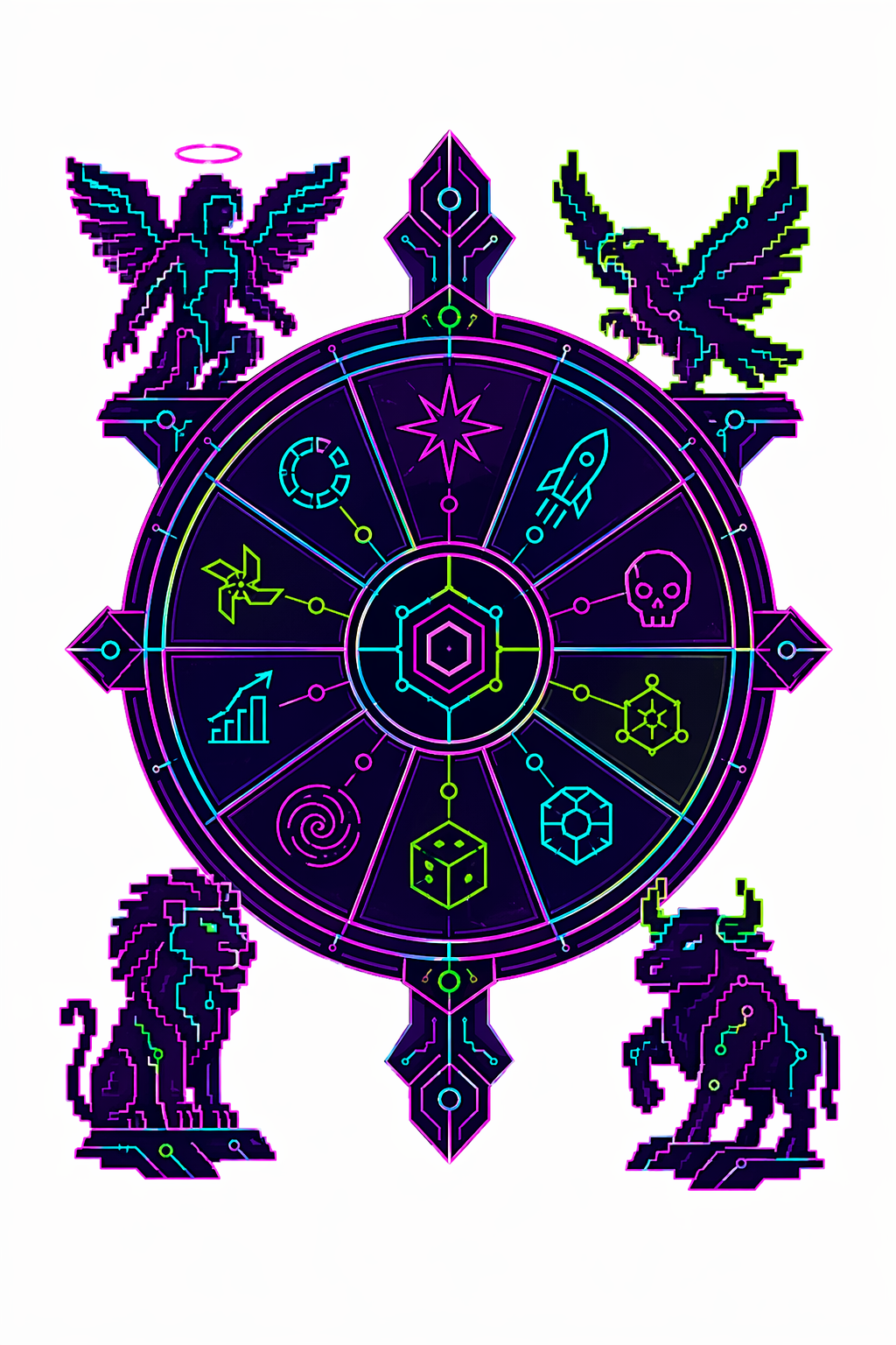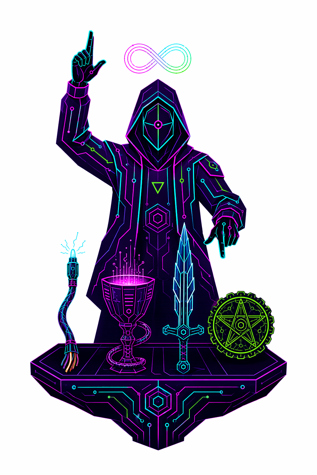 78 карт. Классические образы Таро в чистой неоновой стилистике. Простые формы, яркие акценты.