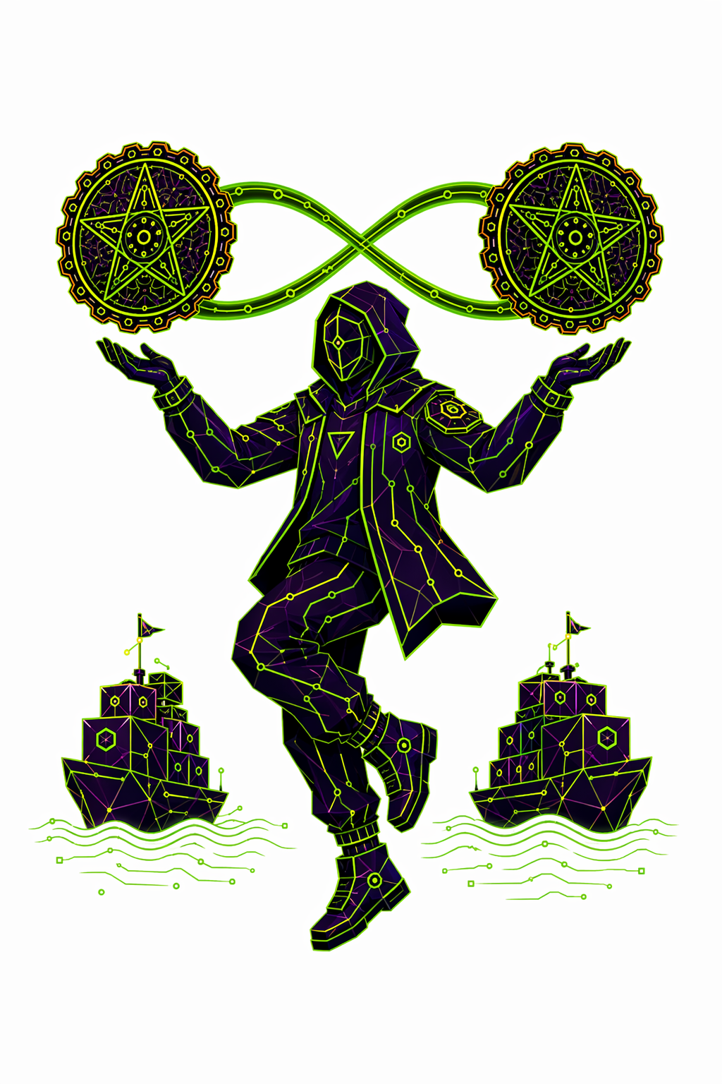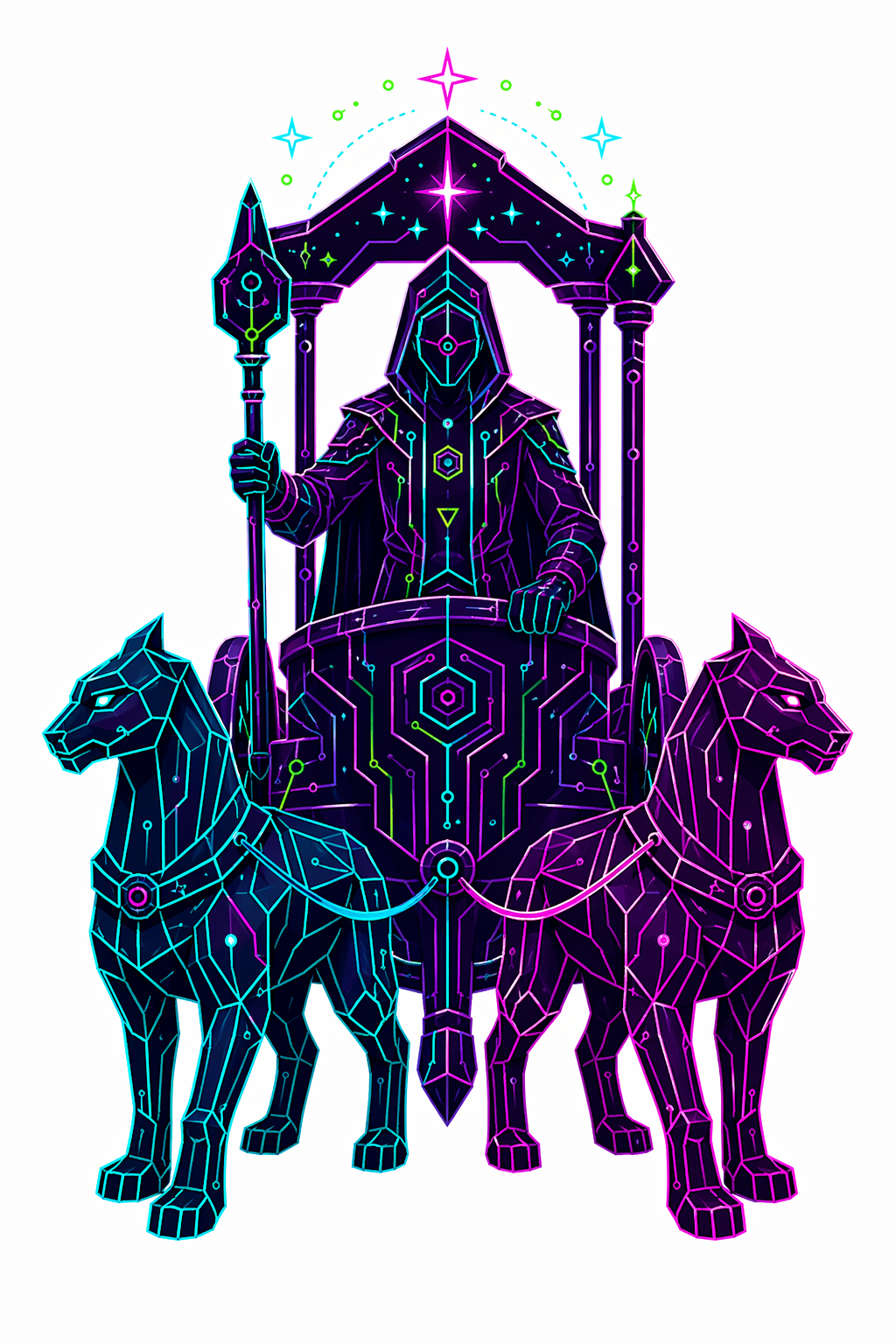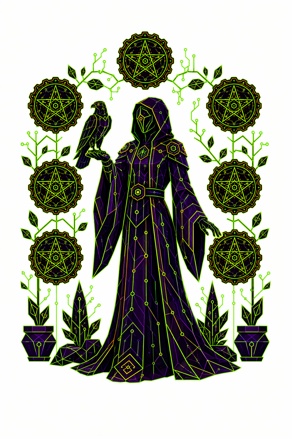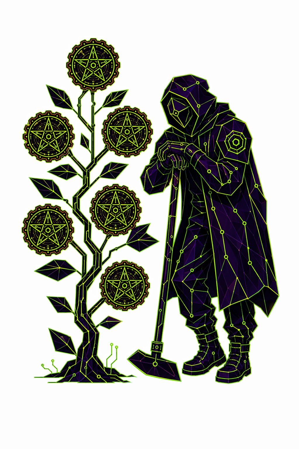 78 карт. Классические образы Таро в чистой неоновой стилистике. Простые формы, яркие акценты.