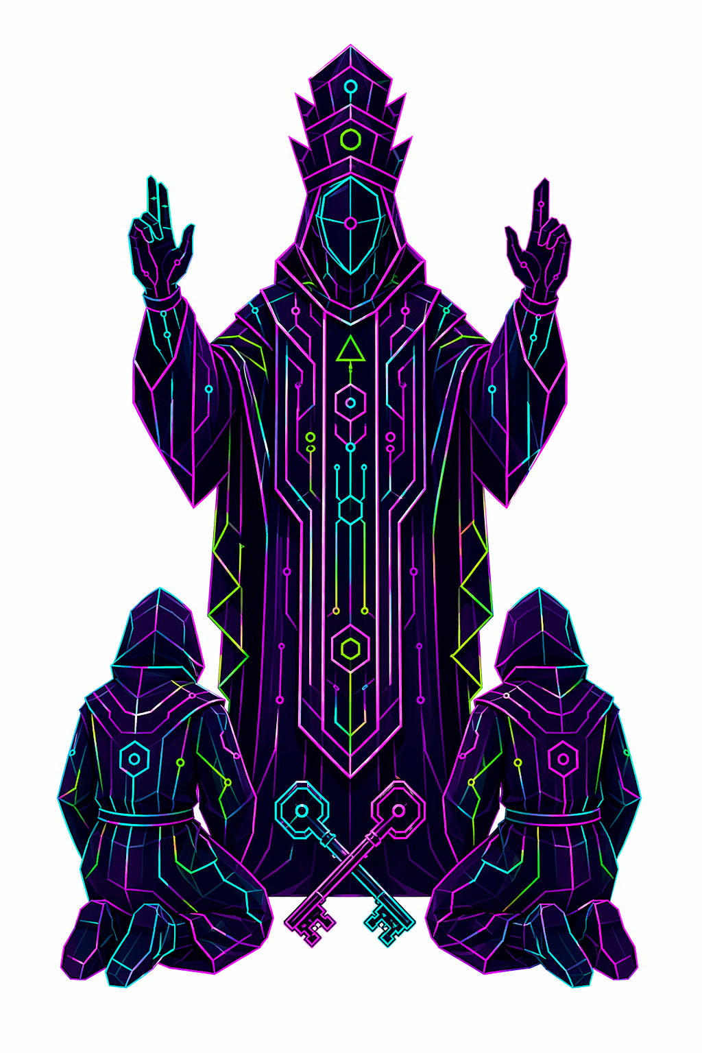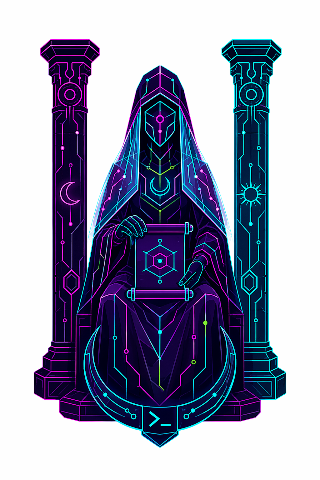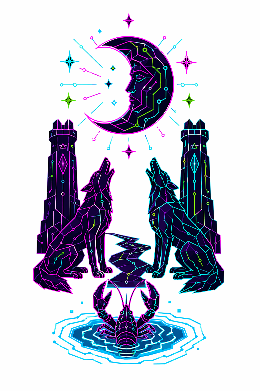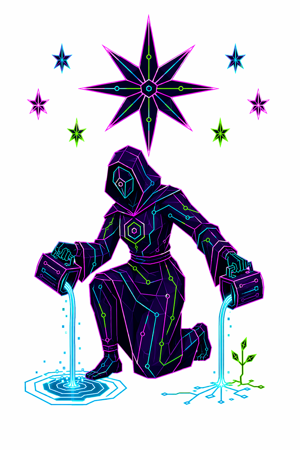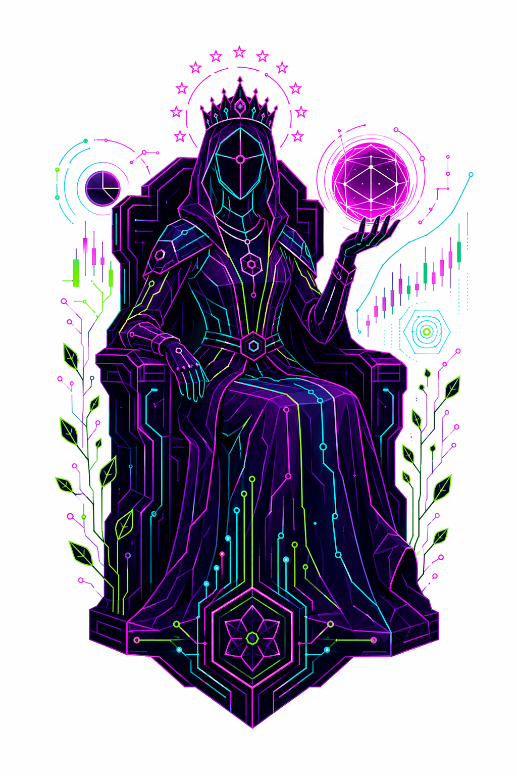 78 карт. Классические образы Таро в чистой неоновой стилистике. Простые формы, яркие акценты.