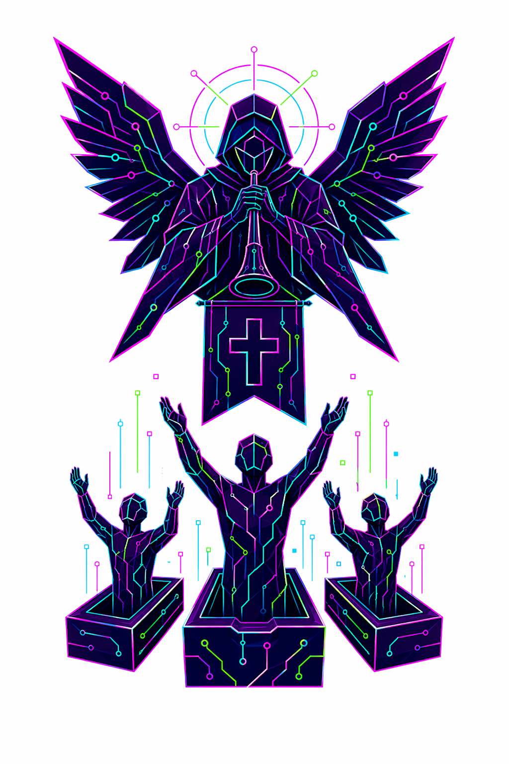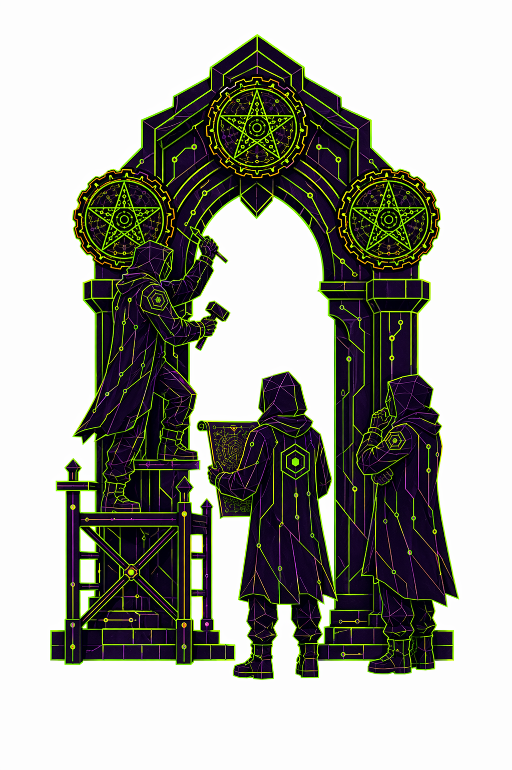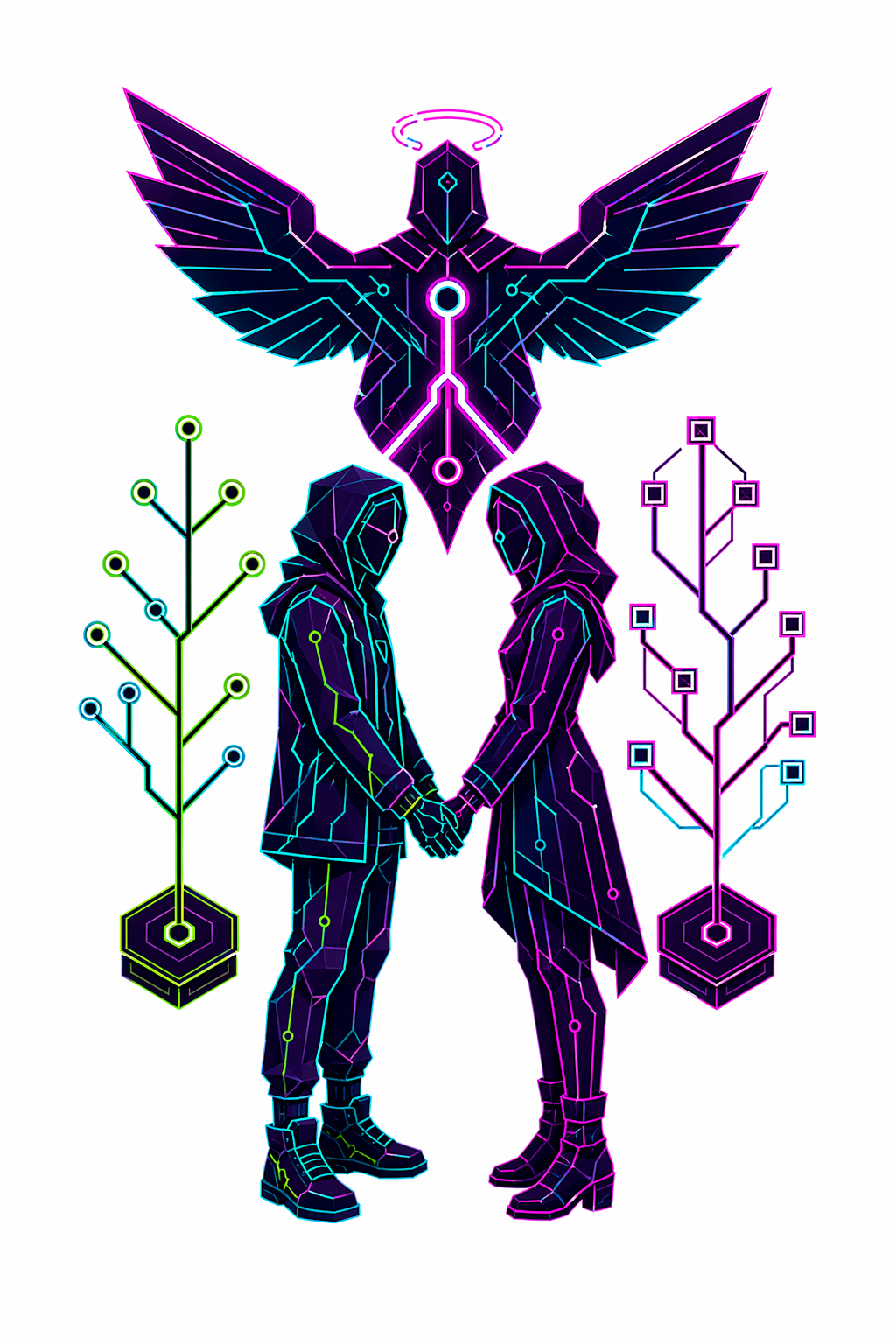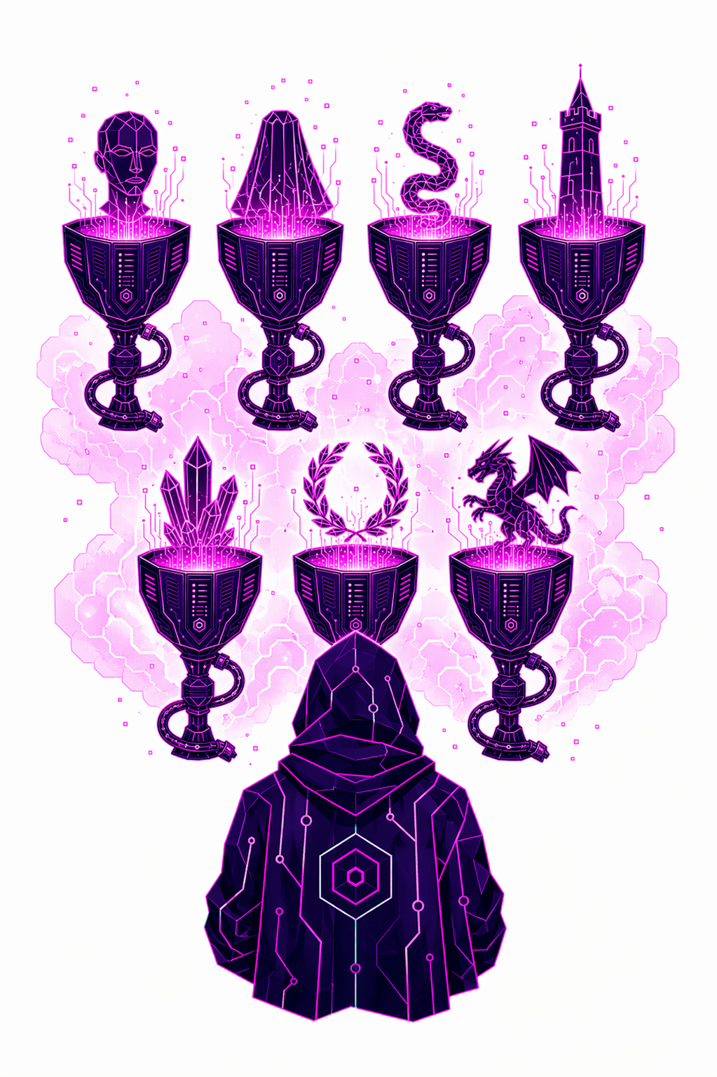 78 карт. Классические образы Таро в чистой неоновой стилистике. Простые формы, яркие акценты.